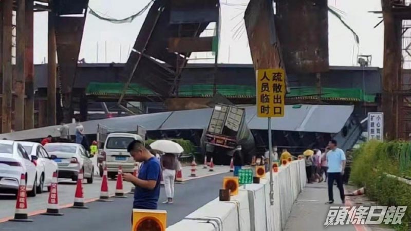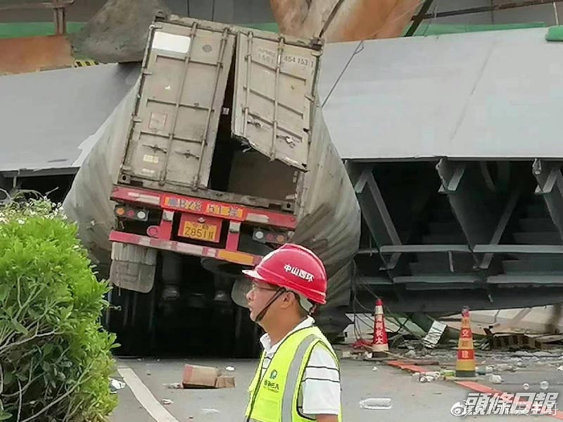 (北京24日综合电)中国广东江门和中山交界,江门外海往返中山路段西江大桥,发生坍塌事故,有汽车被压住。