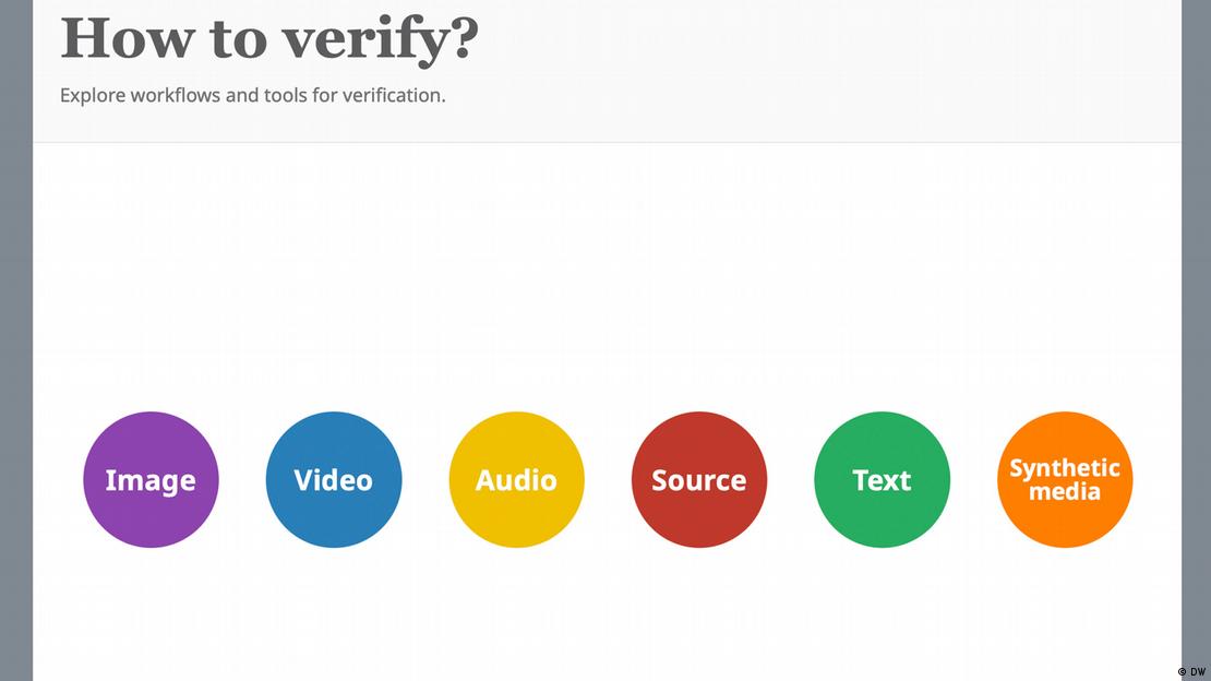 德国之声研究与合作项目组建议从更宏观的角度审视这段音频,包括内容本身、信息来源以及其他相关背景信息。他们在“How to Verify”网站上列出了一些实用的验证工具。