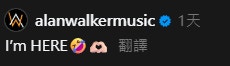 最令网民震惊的是,这股“顺天魔音”竟冲出国际,吸引到Alan Walker本人以官方帐号留言回应:“I’m HERE”。这句神回复随即被楼主置顶,瞬间点燃网民热情,纷纷留言笑称:“师兄有料,唱到本尊都走出来。”目前Alan Walker的留言点赞数已突破10万,甚至超越原帖。